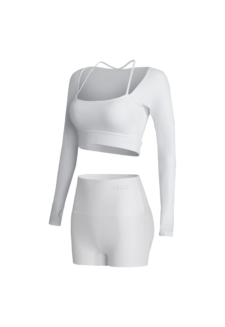 Caracteristici Tip produs: trening Continut pachet: bluza si pantaloni scurti Culoare: alb Imprimeu: uni