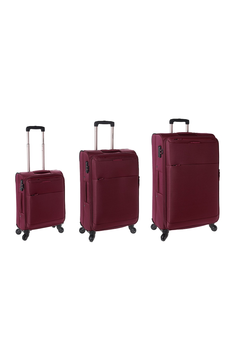 Caracteristici Numar compartimente: 2 Culoare: visiniu Material: poliester Numar roti: 4 Tip compartimente: 1 x buzunar cu plasa