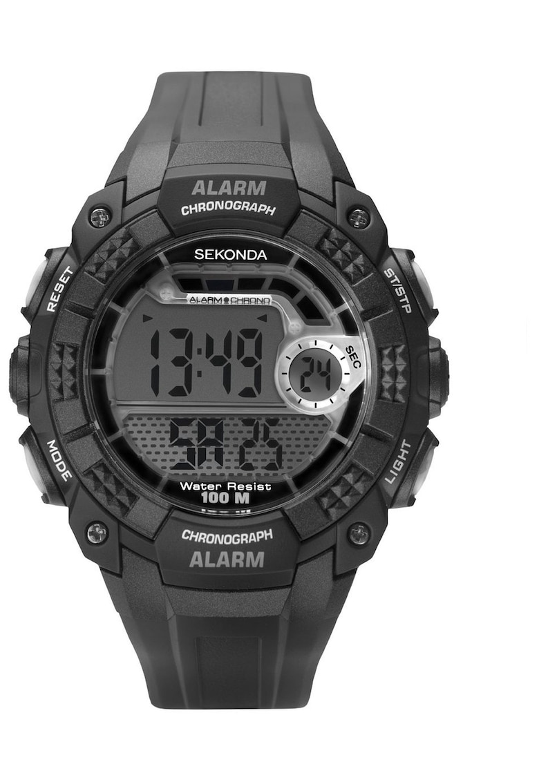 Caracteristici generale Tip mecanism: quartz Tip display: digital Rezistenta la apa: 10 atm Ambalaj: produsul este livrat cu un certificat de autenticitate. Cadran Material geam: cristal mineral Culoare cadran: lcd Carcasa Material carcasa: plastic Culoare carcasa: negru Curea/bratara Tip: curea Material curea/bratara: cauciuc Culoare curea/bratara: negru