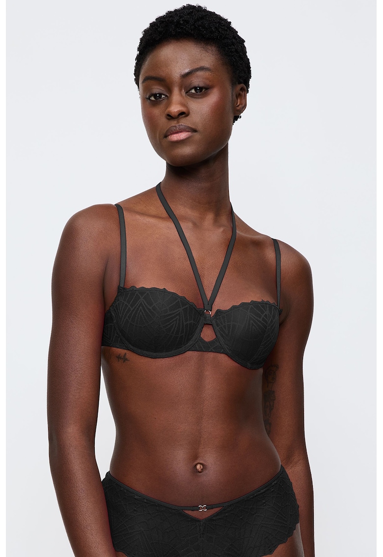 - halter Forma cupa: balconette Burete cupa: cu burete Sustinere metalica: cu sarma Sistem inchidere: tija si anou Compozitie Exterior: 47% poliester
