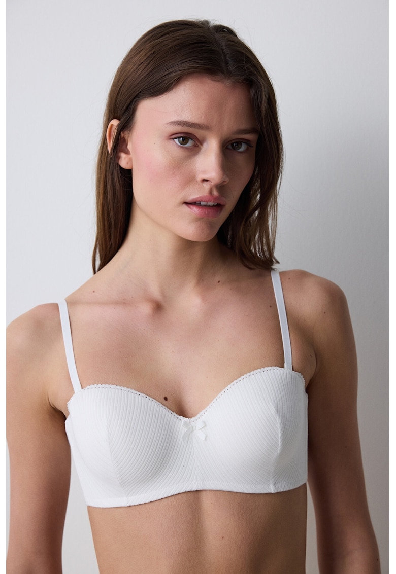 - alb Material: bumbac Imprimeu: uni Barete: ajustabile si detasabile Forma cupa: balconette Burete cupa: cu burete Sustinere metalica: cu sarma Sistem inchidere: tija si anou Compozitie Exterior: 97% bumbac