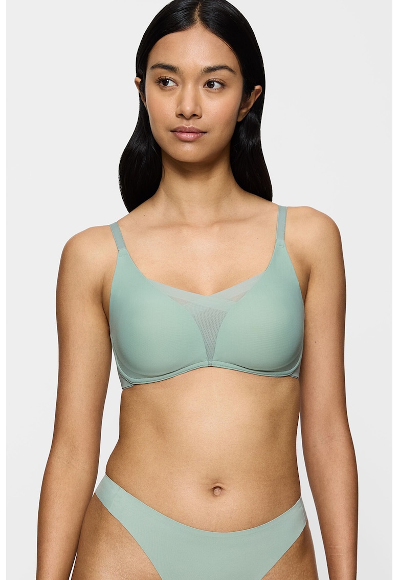 - verde menta Material: sintetic Imprimeu: uni Barete: late Forma cupa: acoperire completa Burete cupa: fara burete Sustinere metalica: fara sarma Sistem inchidere: clasp Compozitie Exterior: 51% poliamida