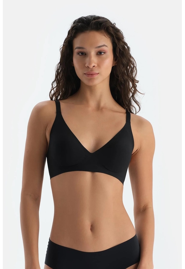 Caracteristici Tip produs: sutien Culoare: negru Material: sintetic Imprimeu: uni Barete: ajustabile Forma cupa: triunghiulara Burete cupa: fara burete Sustinere metalica: fara sarma Sistem inchidere: tija si anou Compozitie Exterior: 67% poliamida
