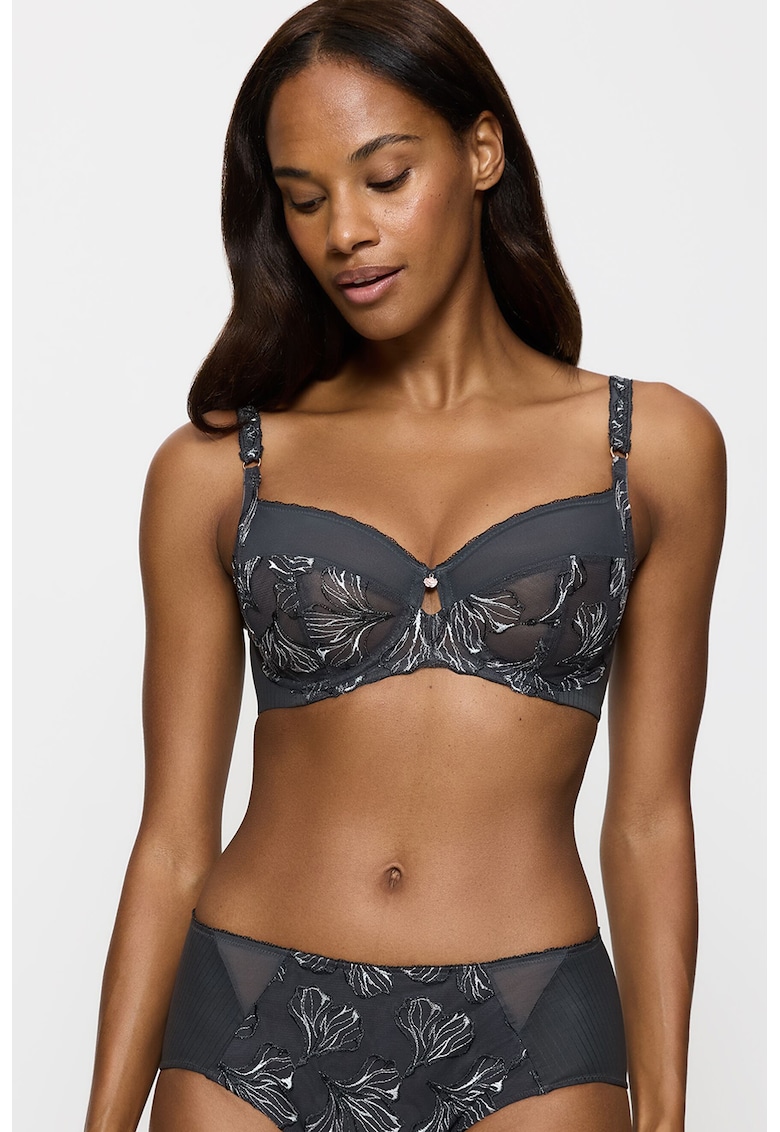- poliamida Imprimeu: floral Forma cupa: clasic Burete cupa: cu burete Sustinere metalica: cu sarma Compozitie Exterior: 53% poliester