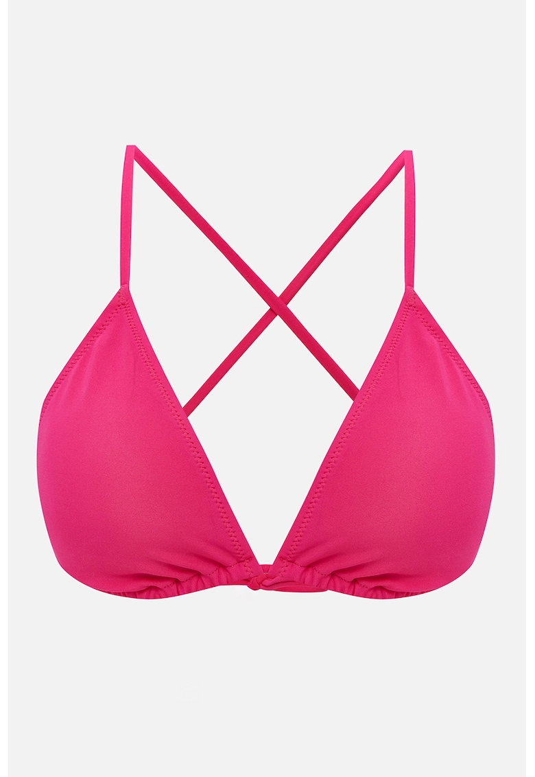 Detalii generale Tip produs: sutien Culoare: fucsia Imprimeu: uni Forma cupa: triunghi Material: sintetic Barete: ajustabile Sistem inchidere: snur Design Tip sutien: burete detasabil Sustinere metalica: fara sarma Stil decolteu: v Stil spate: x Compozitie Exterior: 80% poliamida