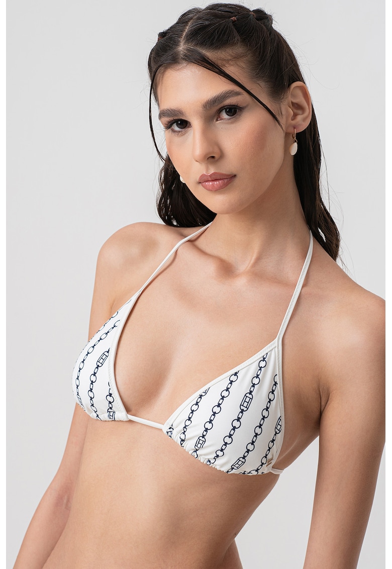 - grafic Forma cupa: triunghi Material: sintetic Barete: ajustabile Sistem inchidere: snur Design Tip sutien: burete detasabil Sustinere metalica: fara sarma Stil decolteu: halter Compozitie Exterior: 80% poliamida reciclata