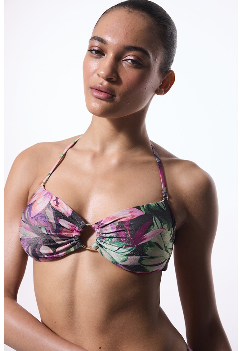 - verde deschis Imprimeu: floral Forma cupa: bandeau Material: sintetic Barete: detasabile Detalii: aspect stralucitor Sistem inchidere: snur Design Sustinere metalica: fara sarma Stil decolteu: halter Compozitie Exterior: 62% poliester