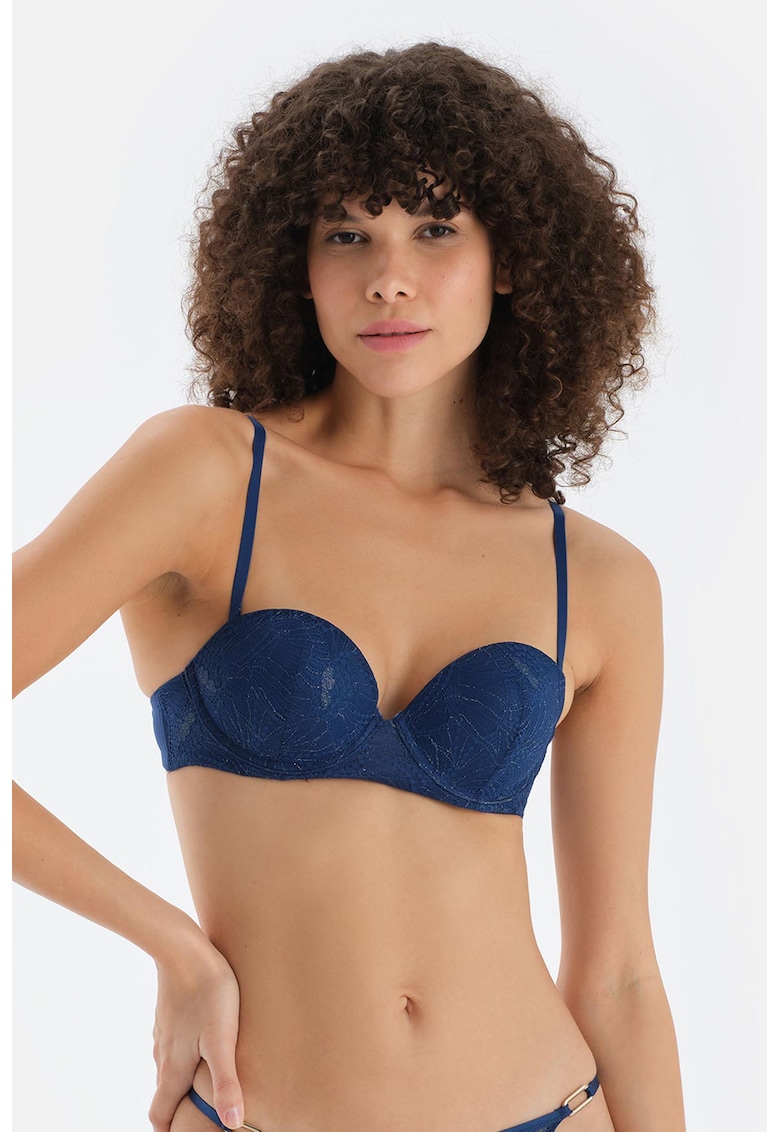 Caracteristici Tip produs: sutien Culoare: indigo Material: sintetic Imprimeu: floral Barete: ajustabile Forma cupa: acoperire partiala Burete cupa: cu burete subtire Sustinere metalica: cu sarma Sistem inchidere: tija si anou Compozitie Exterior: 71% poliamida