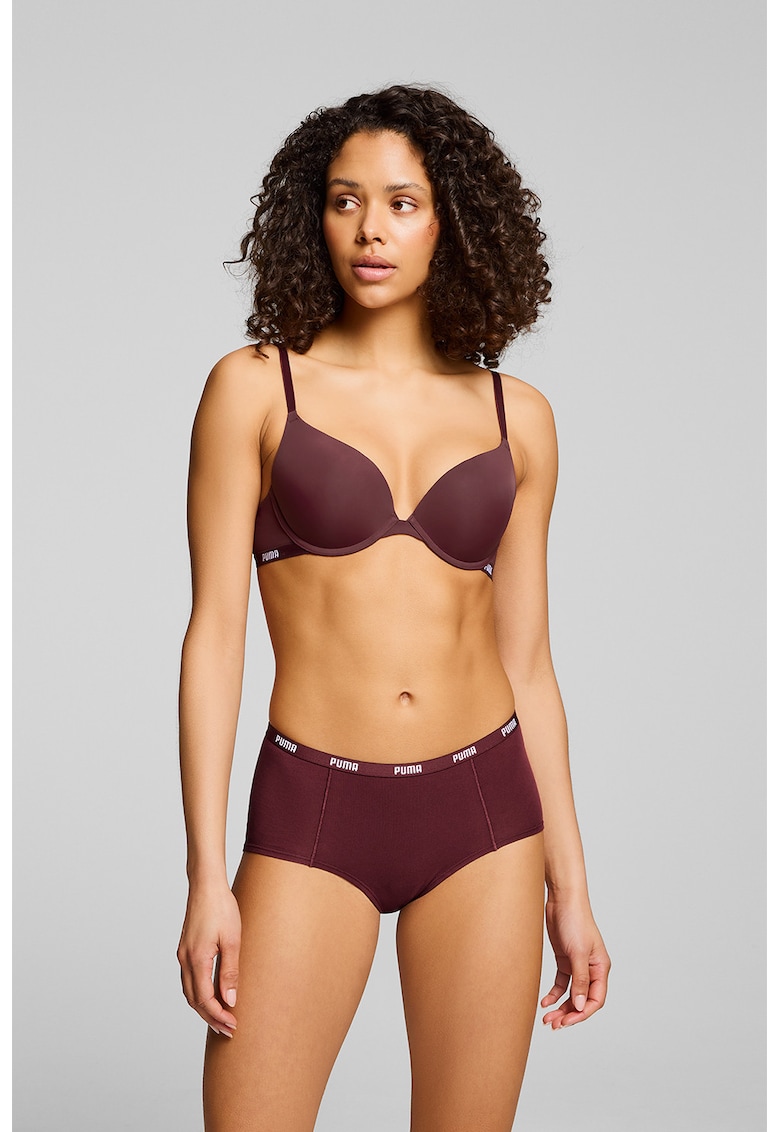 Caracteristici Tip produs: sutien Culoare: violet pruna Material: sintetic Imprimeu: logo Barete: ajustabile Forma cupa: push up Burete cupa: cu burete Sustinere metalica: cu sarma Sistem inchidere: clasp Compozitie Exterior: 84% poliamida