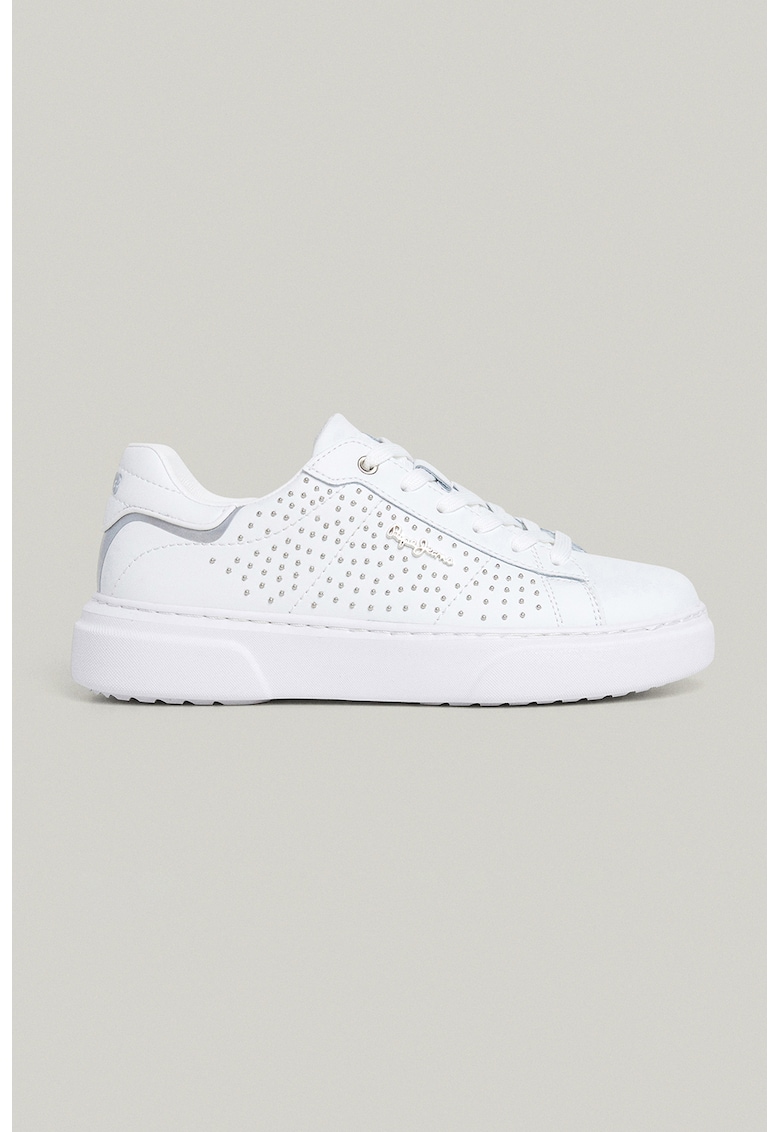 Caracteristici Culoare: alb optic Varf: rotund Imprimeu: logo Tip talpa: flatform Material: piele naturala Stil: casual Sistem inchidere: siret Compozitie Partea superioara: piele Material interior: alte materiale