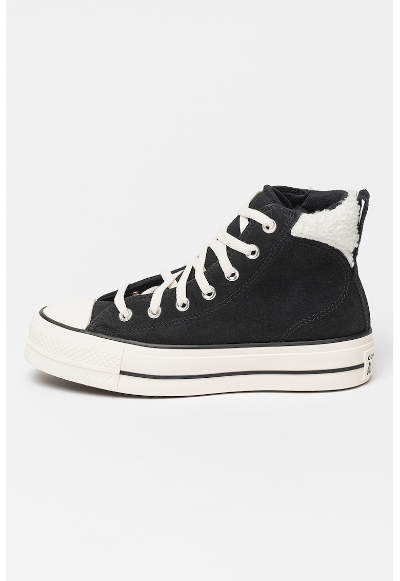 - negru Varf: rotund Imprimeu: logo Tip talpa: flatform Detalii: detaliu din blana sintetica Material: piele intoarsa Stil: casual Sistem inchidere: siret Compozitie Partea superioara: material textil