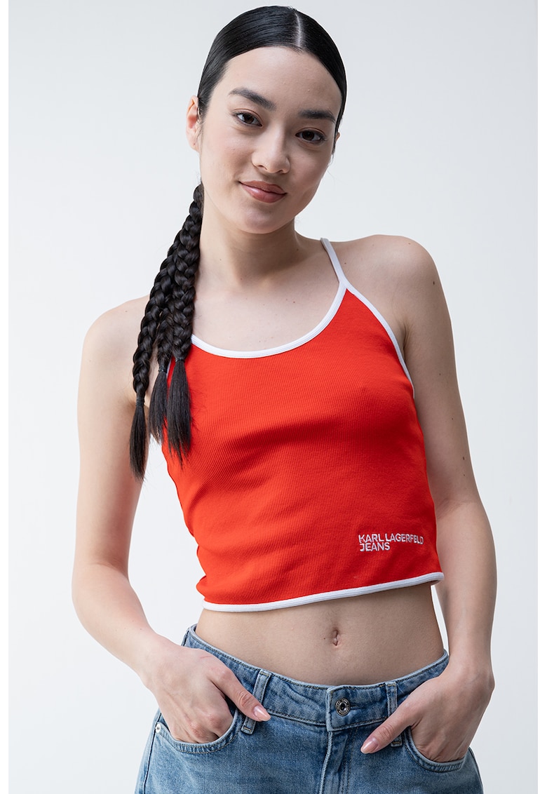 - bumbac organic Croiala: crop Model: rotund Barete: ajustabile Lungime maneca: fara maneca Compozitie Exterior: 95% bumbac organic