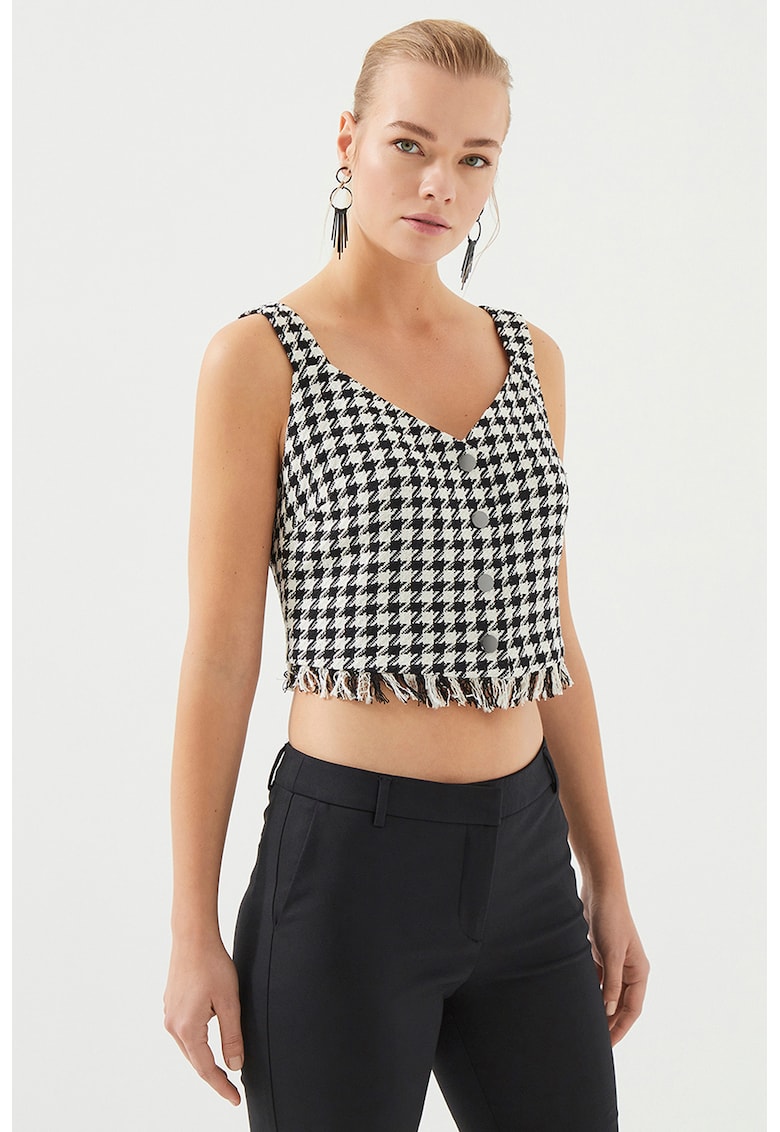 - alb murdar Imprimeu: houndstooth Croiala: crop Material: poliester
