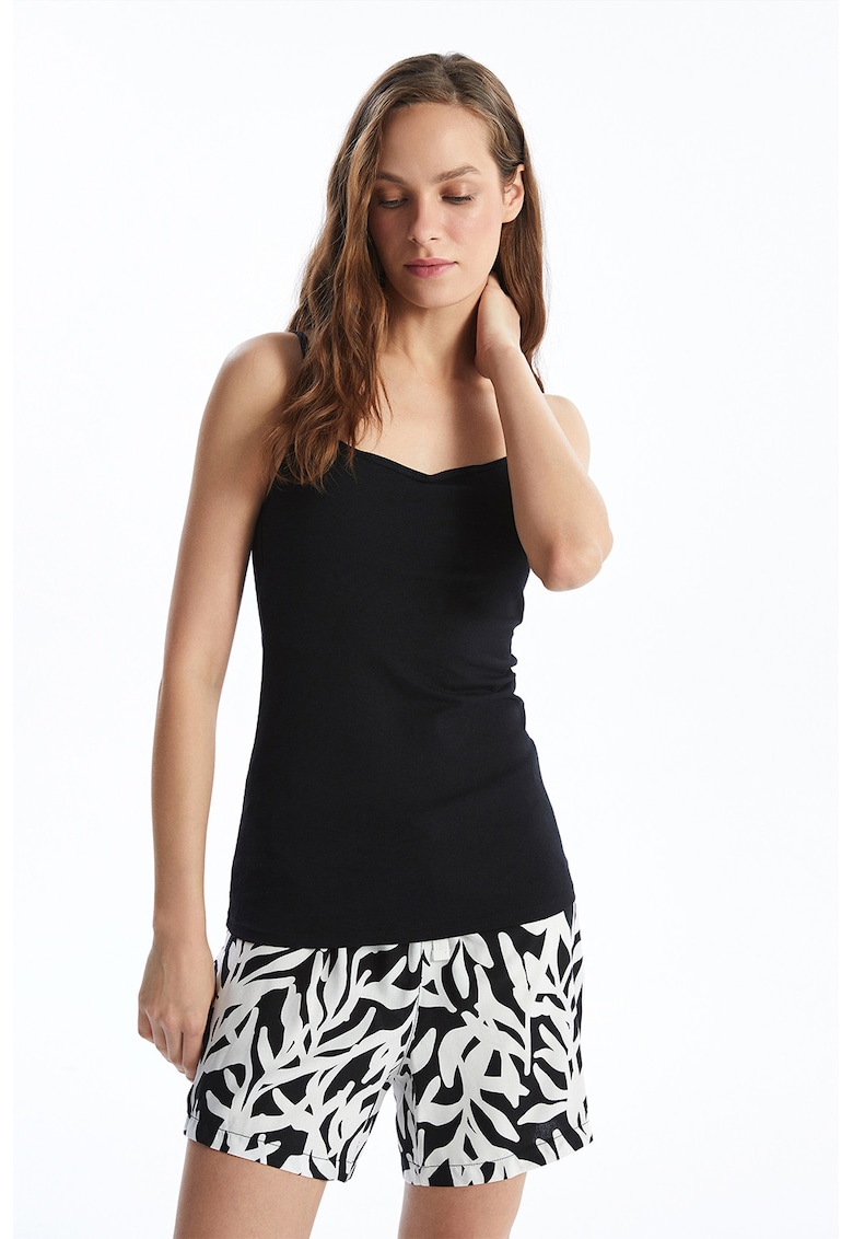 - elastan Croiala: regular fit Model: in v Barete: ajustabile Lungime maneca: fara maneca Detalii: cupe interioare Compozitie Exterior: 95% bumbac