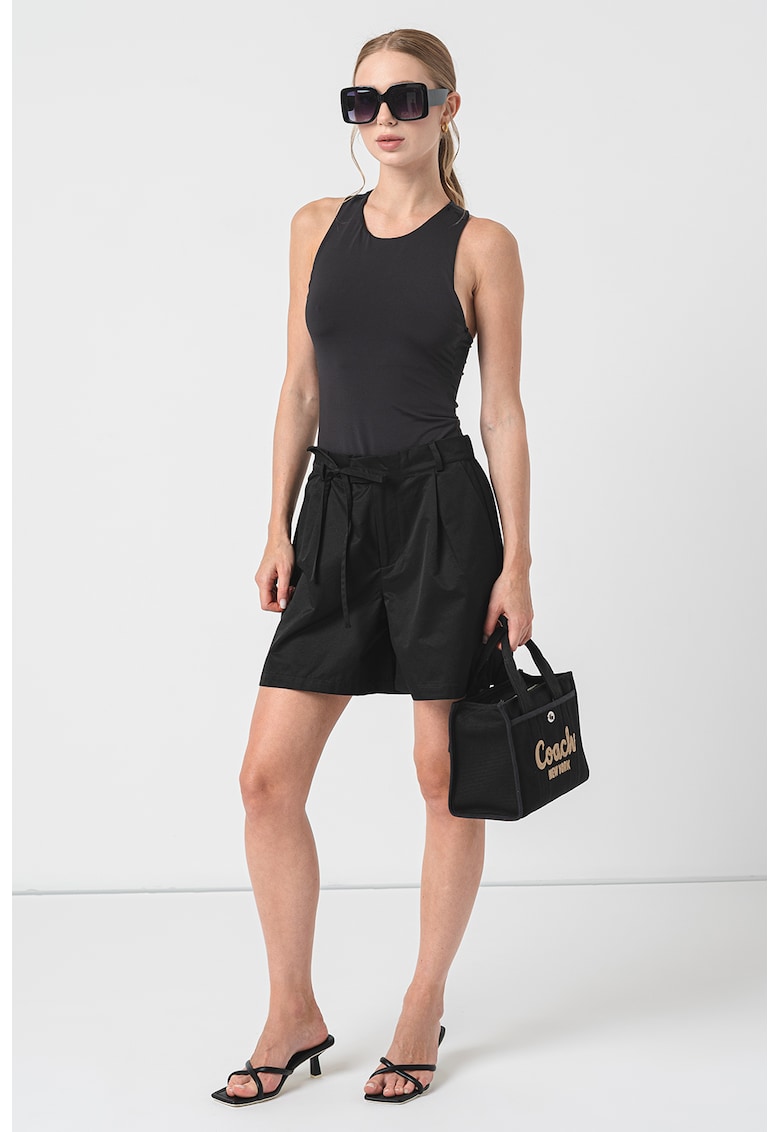 Caracteristici Culoare: negru stins Imprimeu: uni Material: poliamida Croiala: slim fit Model: rotund Lungime maneca: fara maneca Detalii: spate decupat Compozitie Exterior: 94% poliamida