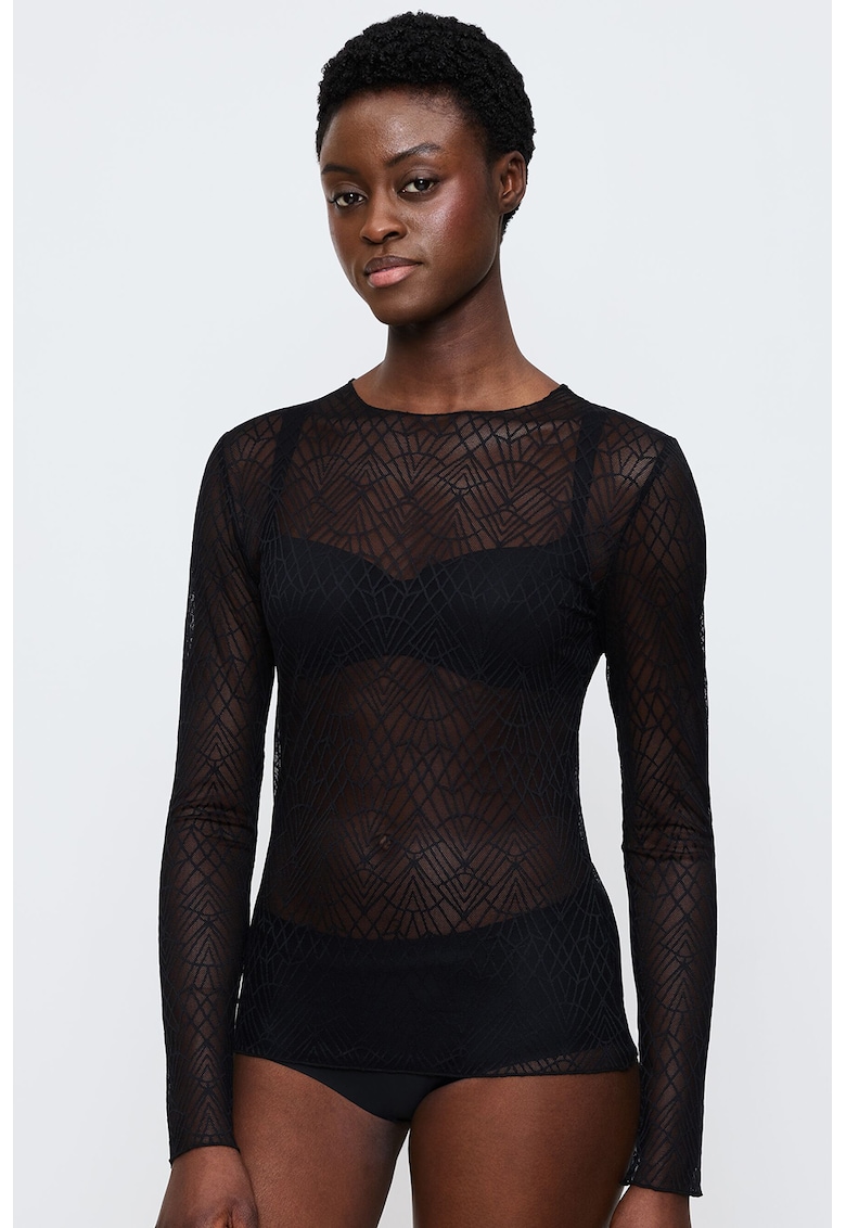 - poliamida Imprimeu: abstract Decolteu: la baza gatului Croiala: slim fit Lungime maneca: maneca lunga Detalii: model brodat