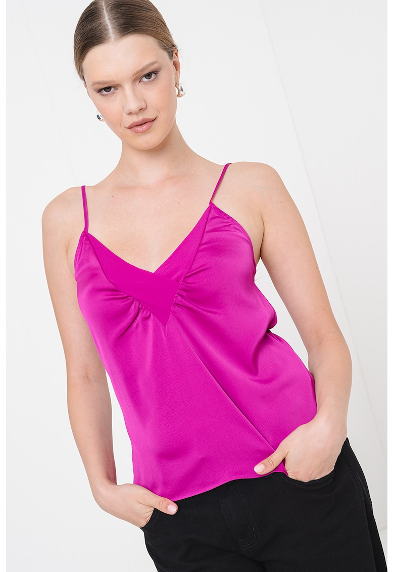 - satin Decolteu: in v Lungime maneca: fara maneca Detalii: fronseuri Compozitie Exterior: 97% poliester