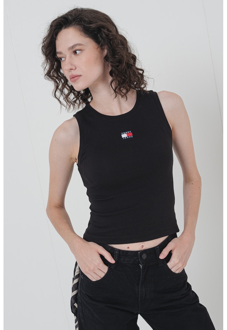 Caracteristici Culoare: negru Imprimeu: uni Material: modal Croiala: crop Model: decolteu la baza gatului Lungime maneca: fara maneca Compozitie Exterior: 95% modal