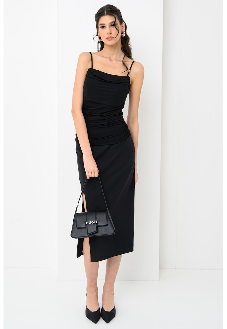 - elastan Decolteu: patrat Lungime maneca: fara maneca Detalii: aspect drapat Compozitie Exterior: 86% poliester
