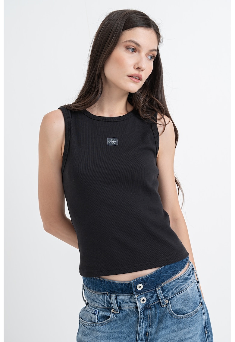 Caracteristici Culoare: negru Imprimeu: uni Material: bumbac Croiala: slim fit Model: rotund Lungime maneca: fara maneca Detalii: aplicatie logo Compozitie Exterior: 100% bumbac Info model Modelul poarta un produs de marimea S. Marimi model: 176 cm inaltime