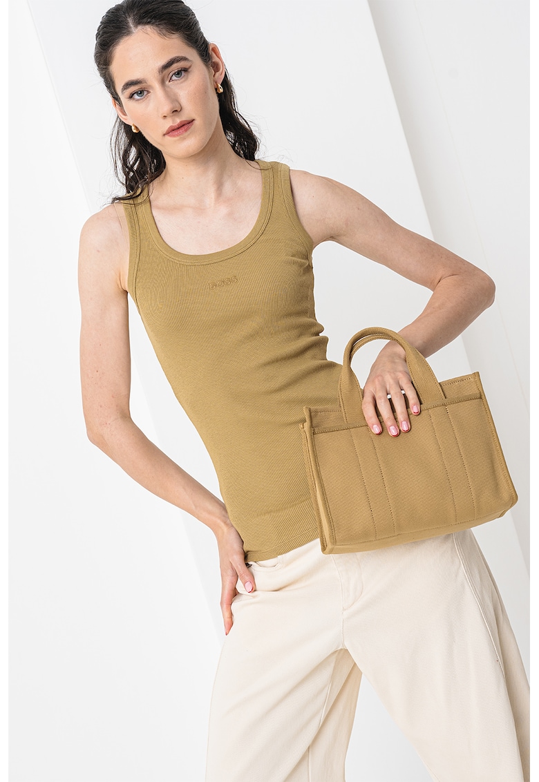 - logo Material: bumbac Croiala: slim fit Model: rotund Lungime maneca: fara maneca Detalii: aspect striat Compozitie Exterior: 98% bumbac