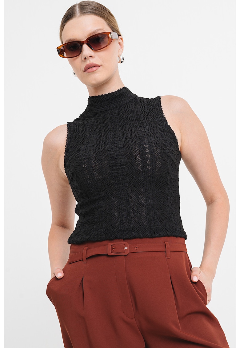Caracteristici Culoare: negru Imprimeu: uni Stil: casual Croiala: slim fit Sistem inchidere: nasturi Material: sintetic Guler: mediu Lungime maneca: fara maneca Detalii: aspect texturat Compozitie Exterior: 98% poliester