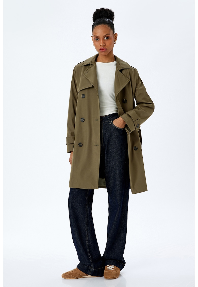 Caracteristici Tip produs: trenci Culoare: kaki Imprimeu: uni Stil: casual Material: poliester Croiala: regular fit Guler: clasic Lungime maneca: maneca lunga Buzunare: 2 laterale Sistem inchidere: nasturi
