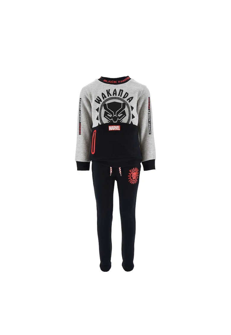 - 1 x bluza Culoare: gri Imprimeu: logo Croiala: regular fit Poveste/Personaj: black panther Material: poliester Lungime maneca: maneca lunga Lungime pantaloni: lungi Sistem inchidere: fara inchidere Detalii: recomandat pentru: primavara