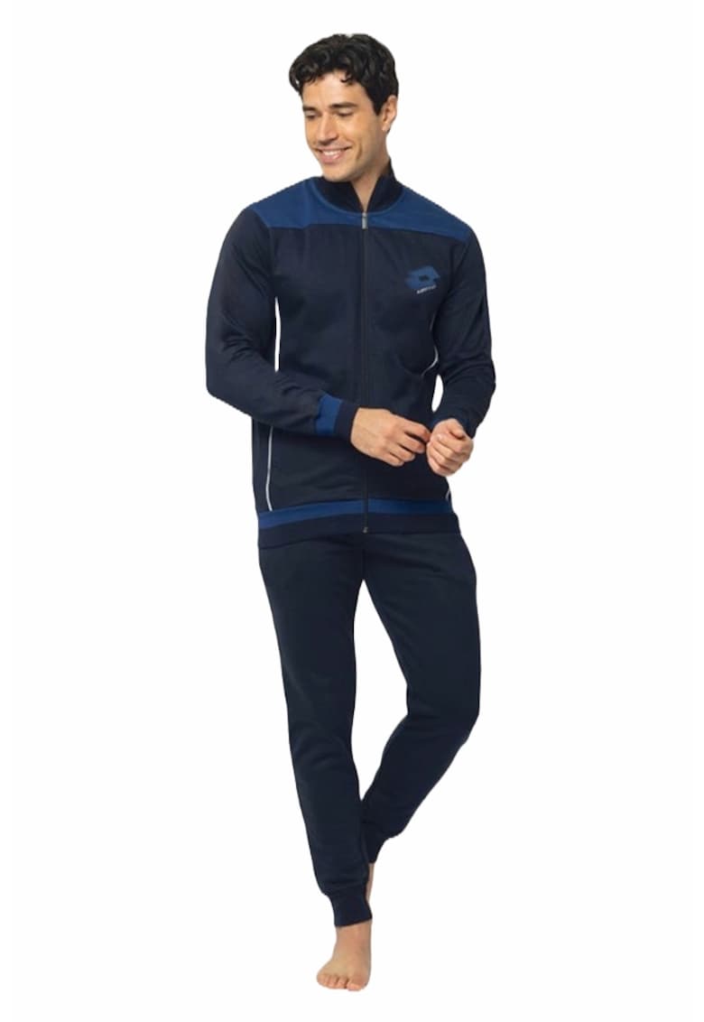 Caracteristici Culoare: albastru Imprimeu: logo Material: bumbac Croiala: regular fit Lungime maneca: maneca lunga Talie: medie Lungime pantaloni: lungi Detalii: recomandat pentru primavara