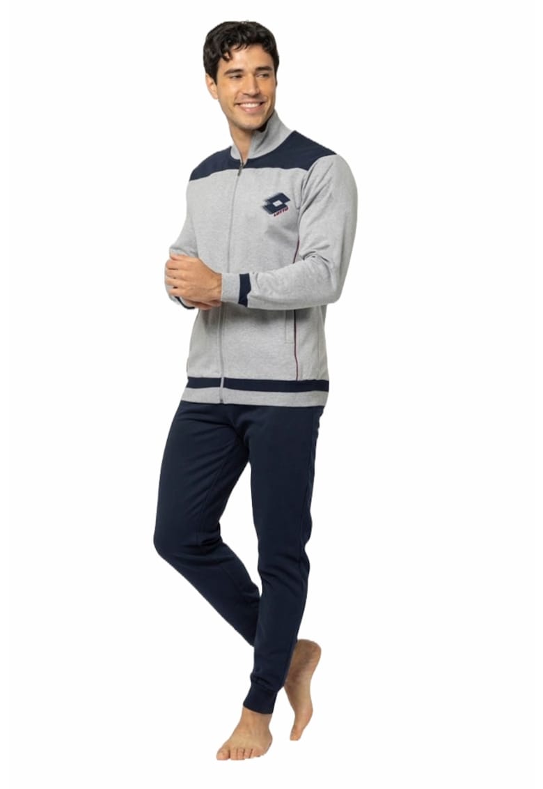Caracteristici Culoare: gri | albastru Imprimeu: logo Material: bumbac Croiala: regular fit Lungime maneca: maneca lunga Talie: medie Lungime pantaloni: lungi Detalii: recomandat pentru primavara