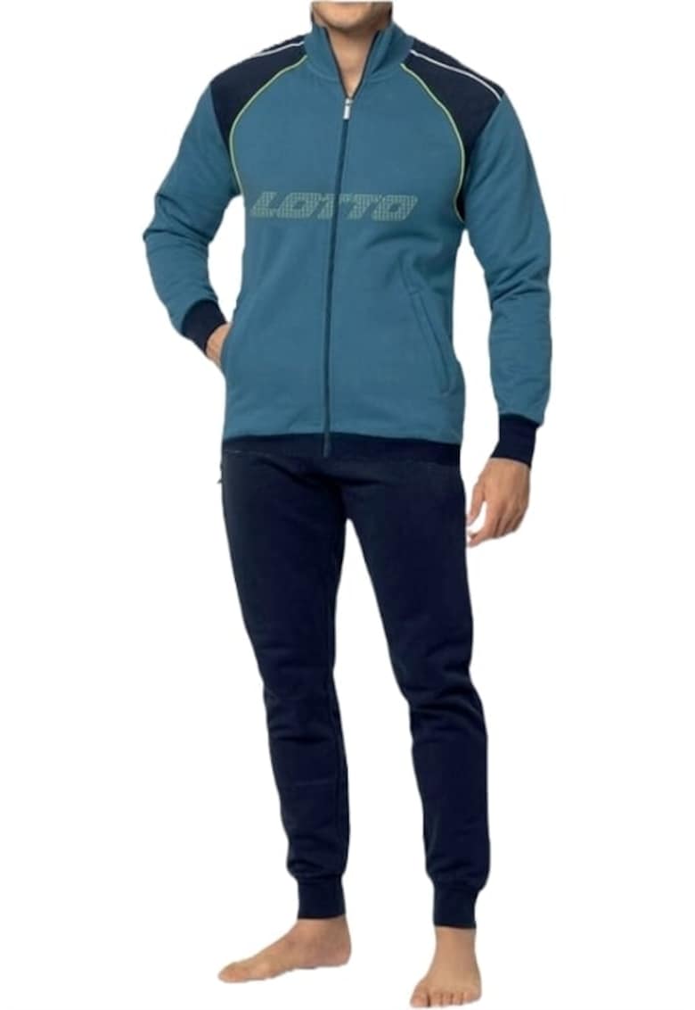 - albastru Imprimeu: logo Material: bumbac Croiala: regular fit Lungime maneca: maneca lunga Talie: medie Lungime pantaloni: lungi Detalii: recomandat pentru primavara