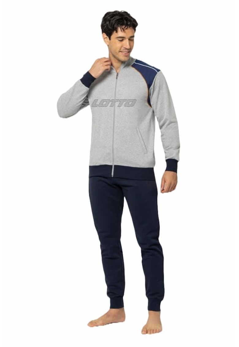 Caracteristici Culoare: gri | albastru Imprimeu: logo Material: bumbac Croiala: regular fit Lungime maneca: maneca lunga Talie: medie Lungime pantaloni: lungi Detalii: recomandat pentru primavara