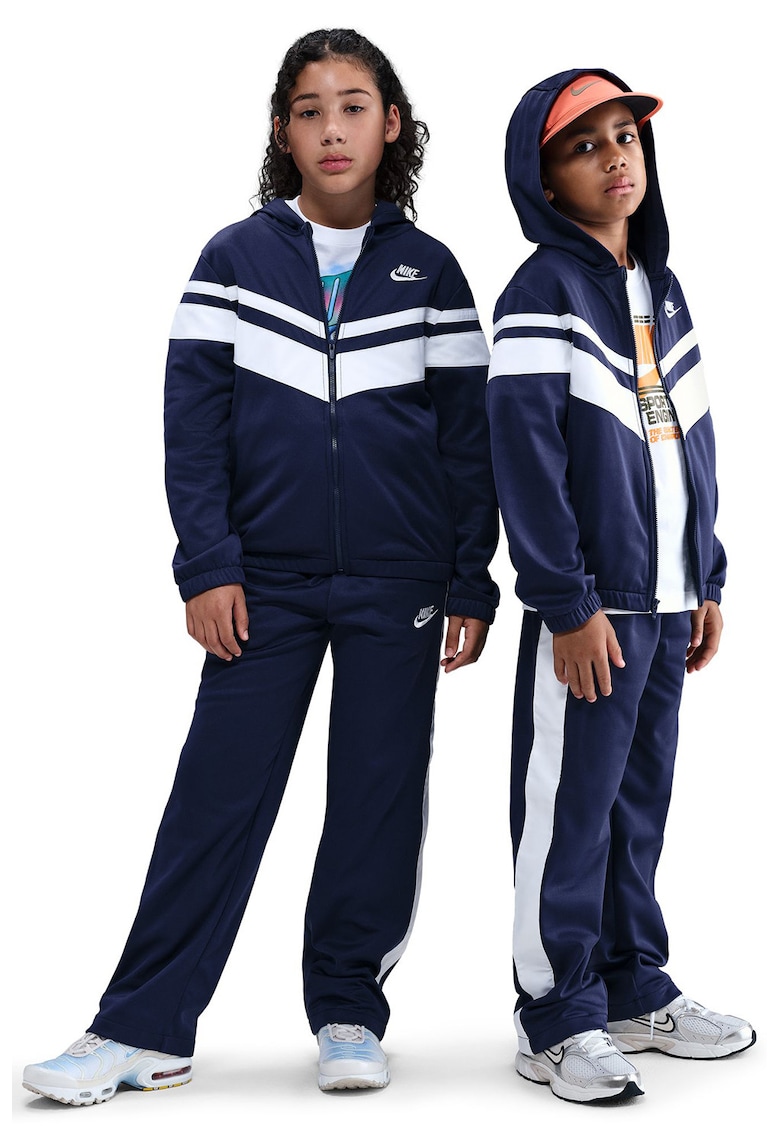 - bleumarin Imprimeu: logo Croiala: regular fit Material: poliester Lungime maneca: maneca lunga Lungime pantaloni: lungi Sistem inchidere: fermoar Detalii: talie elastica