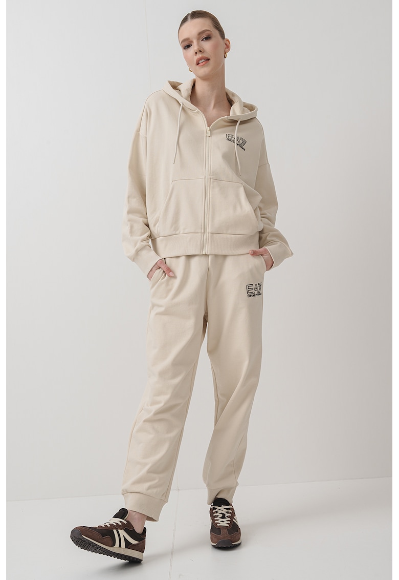 Caracteristici Culoare: crem Imprimeu: logo Material: bumbac Croiala: regular fit Lungime maneca: maneca lunga Buzunare: 4 Talie: medie Lungime pantaloni: lungi Sistem inchidere: fermoar Compozitie Exterior: 85% bumbac