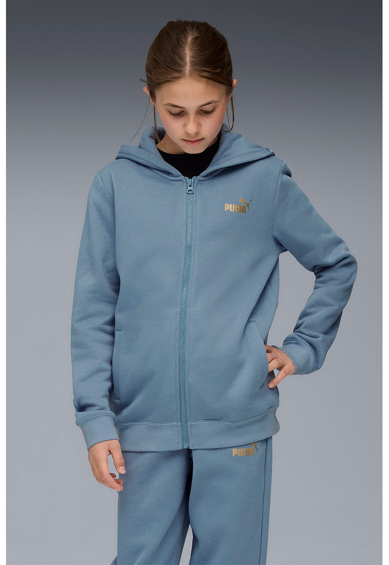 Caracteristici Continut pachet: hanorac si pantaloni jogger Culoare: albastru prafuit Imprimeu: logo Croiala: regular fit Material: poliester