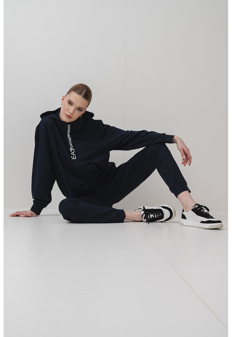 Caracteristici Culoare: bleumarin Imprimeu: logo Material: bumbac Croiala: regular fit Lungime maneca: maneca lunga Buzunare: kangaroo Lungime pantaloni: lungi Detalii: fenta cu fermoar Compozitie Exterior: 95% bumbac