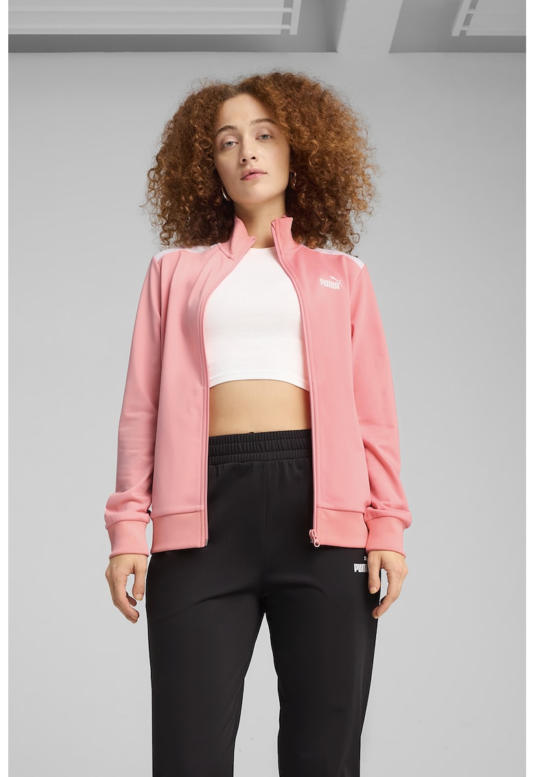 - roz Imprimeu: uni Material: poliester Croiala: slim fit Guler: inalt Lungime maneca: maneca lunga Buzunare: laterale Talie: medie Lungime pantaloni: lungi Detalii: logo Sistem inchidere: fermoar Compozitie Exterior: 100% poliester reciclat