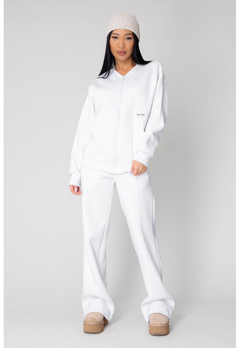 - in cusaturile laterale Talie: medie Lungime pantaloni: lungi Detalii: captuseala din fleece Sistem inchidere: fermoar Continut pachet: hanorac si pantaloni sport Compozitie Exterior: 80% bumbac