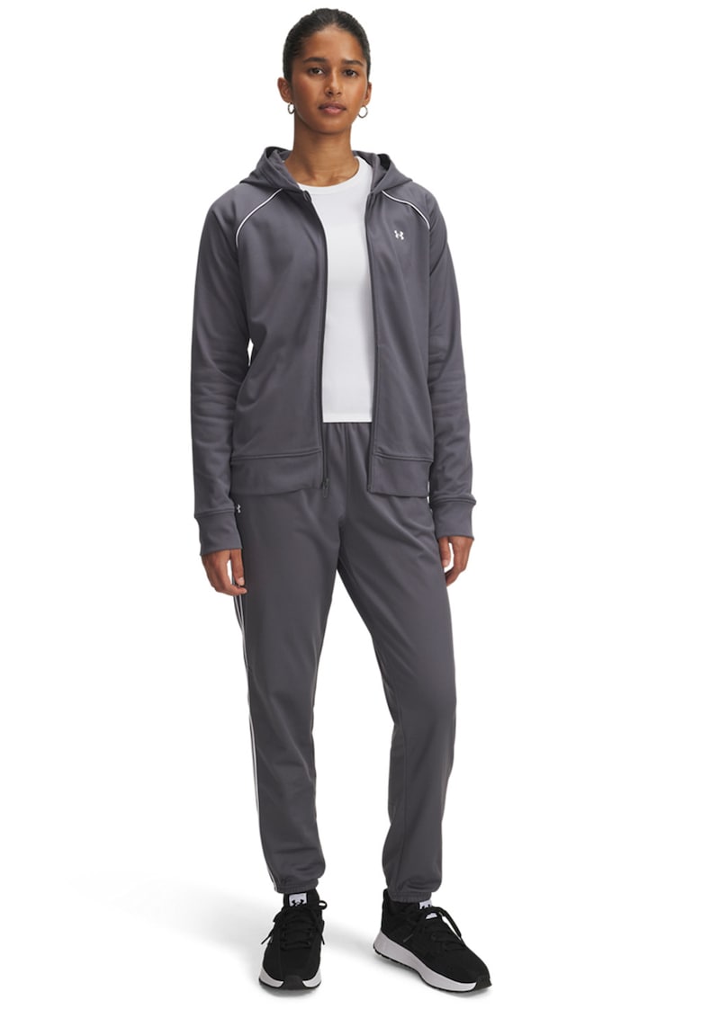- logo Material: poliester Croiala: regular fit Lungime maneca: maneca lunga Buzunare: in cusaturile laterale Lungime pantaloni: lungi Detalii: maneci raglan Sistem inchidere: fermoar Continut pachet: hanorac si pantaloni sport Compozitie Exterior: 100% poliester reciclat