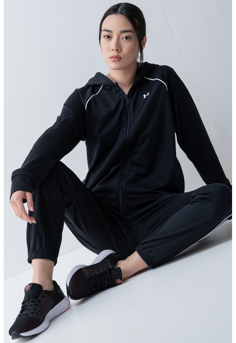 Caracteristici Culoare: negru Imprimeu: uni Material: poliester Croiala: regular fit Lungime maneca: maneca lunga Buzunare: buzunare laterale Lungime pantaloni: lungi Detalii: talie ajustabila