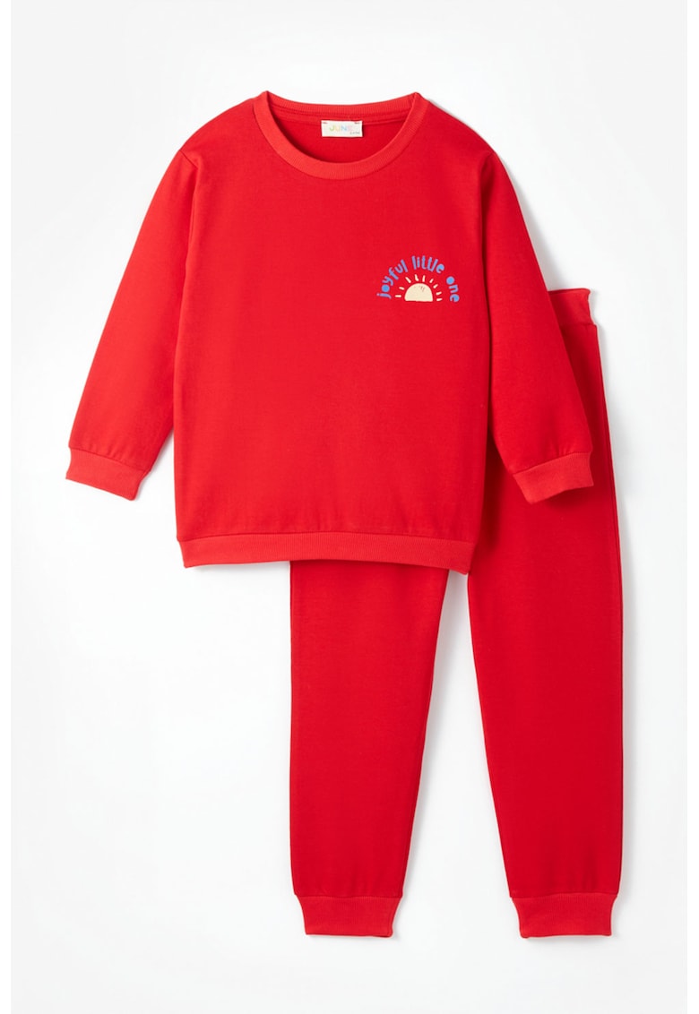 Caracteristici Continut pachet: bluza sport si pantaloni sport Culoare: rosu vermillion Imprimeu: grafic Croiala: regular fit Material: bumbac Lungime maneca: maneca lunga Lungime pantaloni: lungi Sistem inchidere: fara inchidere Compozitie Exterior: 100% bumbac