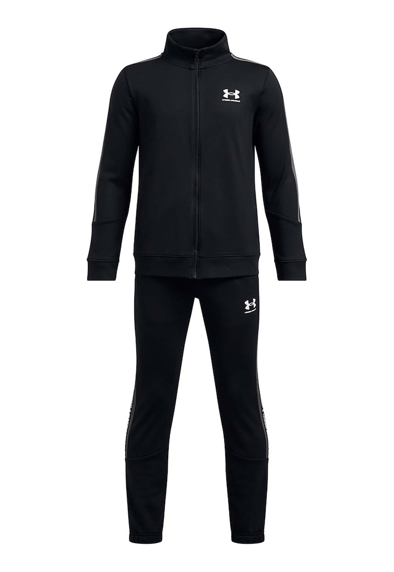 Caracteristici Culoare: negru Imprimeu: logo Croiala: slim fit Material: poliester Guler: mediu Lungime maneca: maneca lunga Lungime pantaloni: lungi Sistem inchidere: fermoar