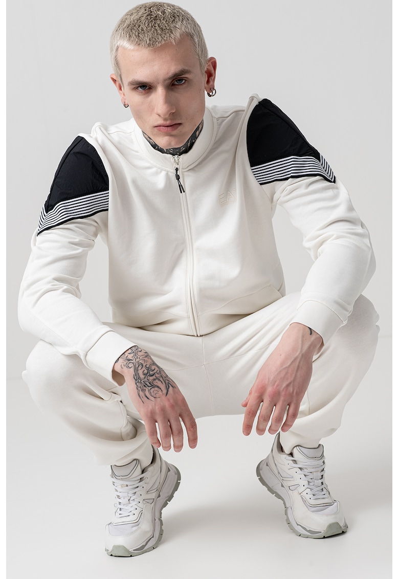 - crem Imprimeu: uni Material: bumbac Croiala: regular fit Lungime maneca: maneca lunga Buzunare: buzunare laterale Talie: medie Lungime pantaloni: lungi Detalii: cordon in talie Sistem inchidere: fermoar Compozitie Exterior: 100% bumbac Captuseala: 100% poliamida Info model Modelul poarta un produs de marimea M. Marimi model: 188 cm inaltime
