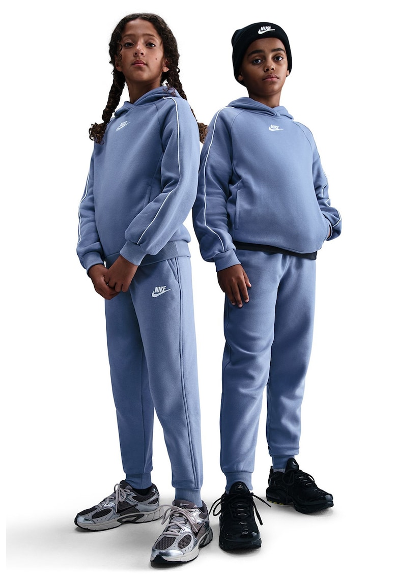 Caracteristici Continut pachet: hanorac si pantaloni sport Culoare: albastru deschis Imprimeu: uni Croiala: regular fit Material: sintetic
