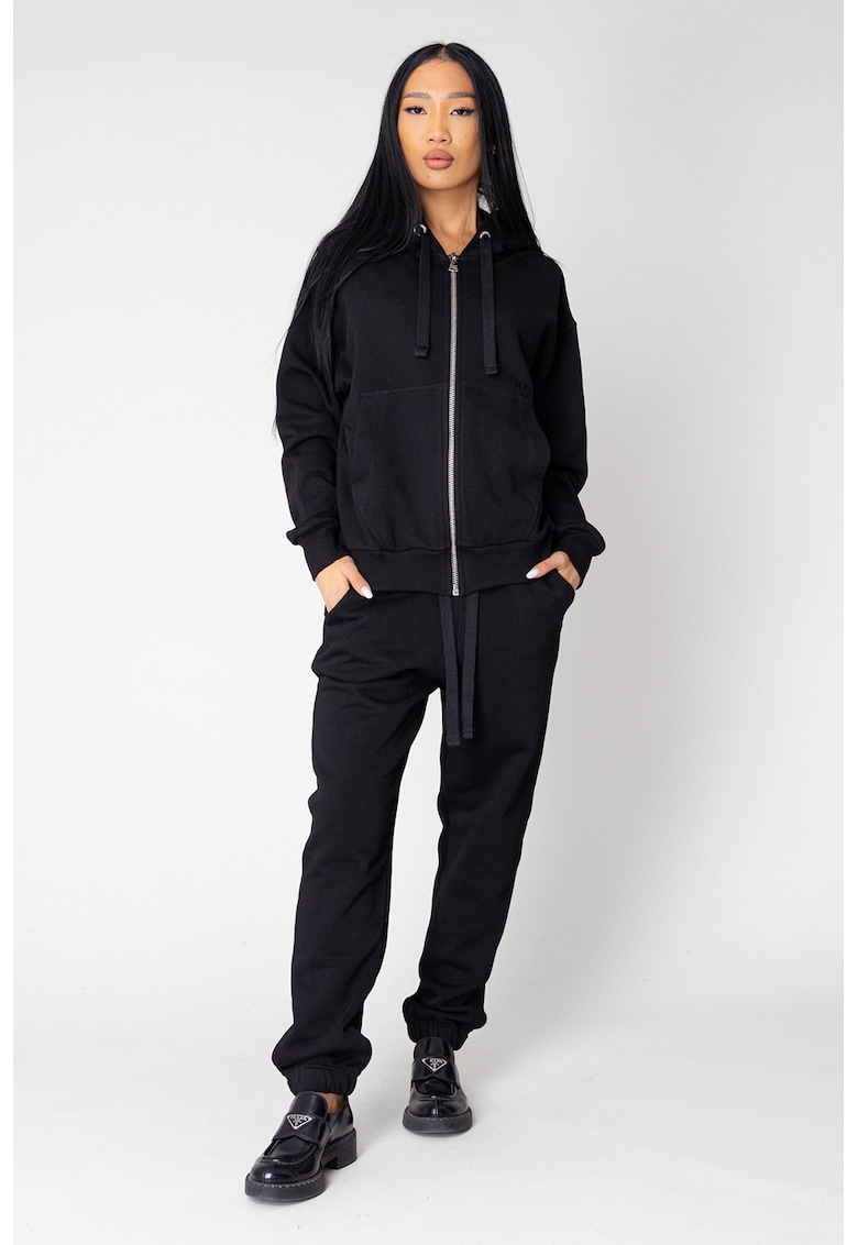 - in cusaturile laterale Talie: medie Lungime pantaloni: lungi Detalii: snur pentru ajustare si insertie elastica in talie Sistem inchidere: fermoar Continut pachet: hanorac si pantaloni sport Compozitie Exterior: 80% bumbac