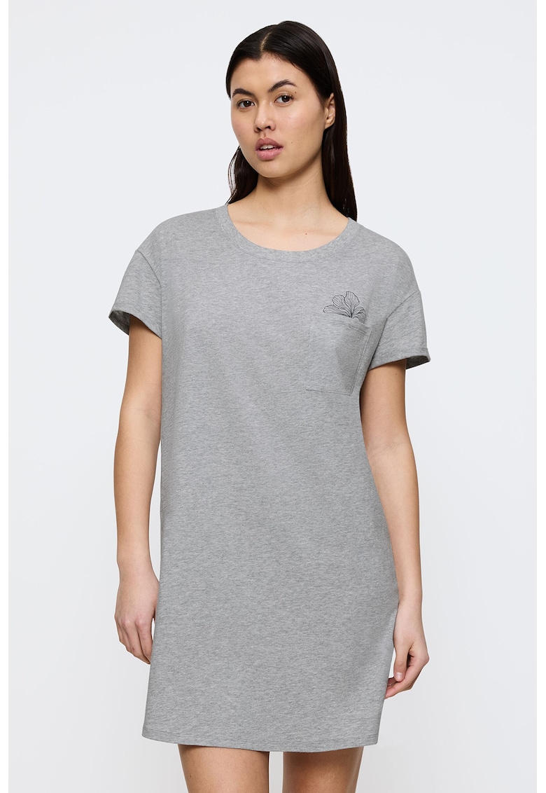 Caracteristici Tip produs: camasa de noapte Culoare: gri deschis Material: bumbac Imprimeu: uni Decolteu: rotund Croiala: lejer Maneci: cazute Lungime maneca: maneca scurta Buzunare: pe piept Sistem inchidere: fara inchidere Compozitie Exterior: 100% bumbac