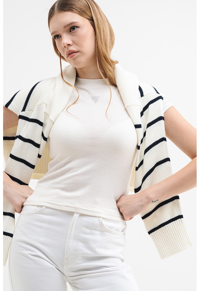 - viscoza Croiala: slim fit Model: decolteu la baza gatului Lungime maneca: maneca scurta Compozitie Exterior: 52% viscoza