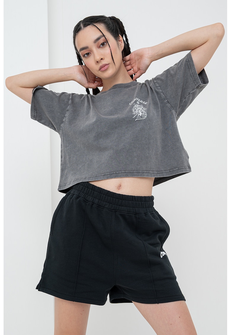 - logo Material: bumbac Croiala: crop Model: decolteu la baza gatului Lungime maneca: maneca medie Compozitie Exterior: 100% bumbac Info model Modelul poarta un produs de marimea S. Marimi model: 170 cm inaltime