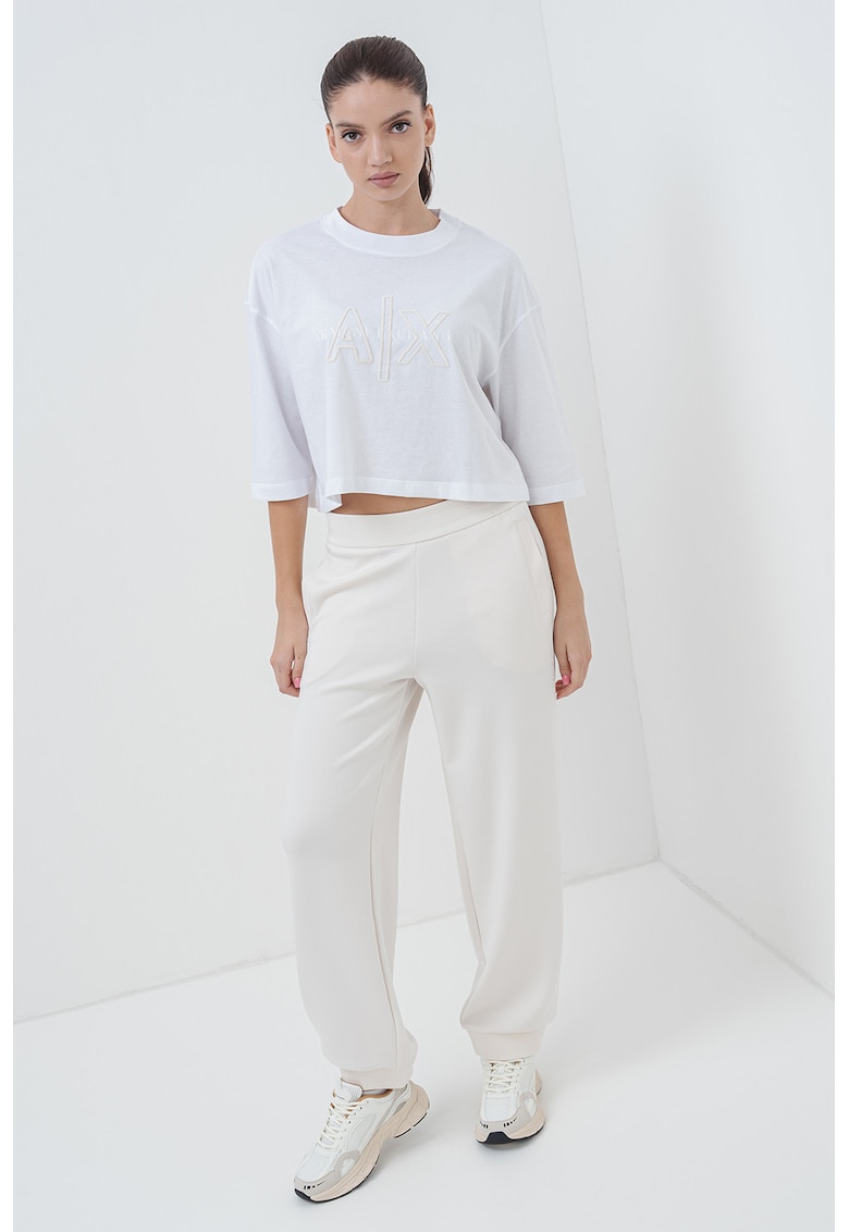- crem Imprimeu: uni Material: bumbac Croiala: crop Model: decolteu la baza gatului Lungime maneca: maneca scurta Compozitie Exterior: 100% bumbac Info model Modelul poarta un produs de marimea S. Marimi model: 175 cm inaltime