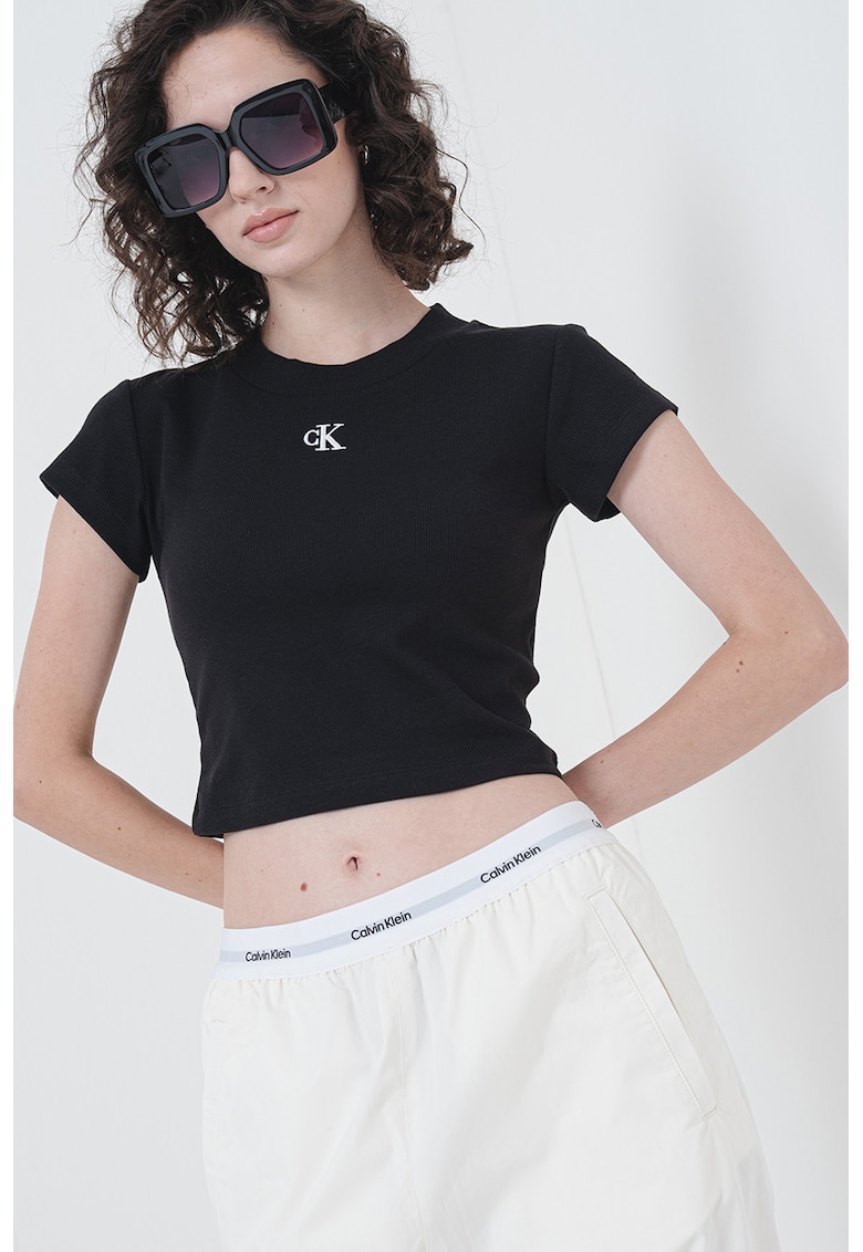 Caracteristici Culoare: negru Imprimeu: logo Material: bumbac Croiala: crop Model: decolteu la baza gatului Lungime maneca: maneca scurta Compozitie Exterior: 100% bumbac Info model Modelul poarta un produs de marimea S. Marimi model: 177 cm inaltime